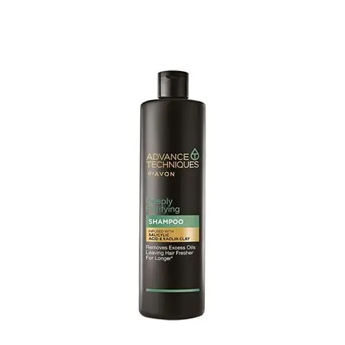 Laat je haar er langer fris gewassen uitzien en verminder overtollig vet met 30% – zonder het haar uit te drogen. De AVON Advance Techniques Deeply Purifying haarlijn bestrijdt haar dat vatbaar is voor vette haarwortels/schubben met een effectieve formule van salicylzuur en kaolienklei. AVON Advance Techniques – Deeply Purifying Shampoo is een intensief reinigende shampoo die het haar van aanzet tot punt grondig reinigt en overtollig vet verwijdert. Hier in de 400 ml verpakking.